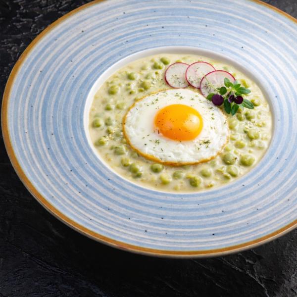 grillezett sertéskaraj baconnel-tükörtojással sütve, fűszeres steakburgonyával, csemegeuborkával