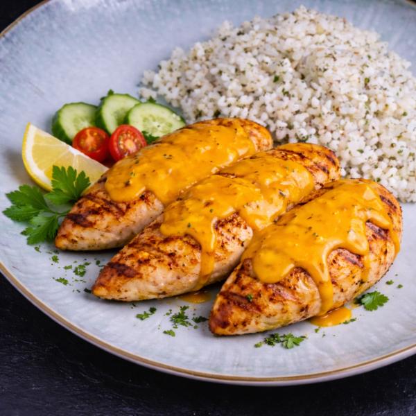 olvasztott cheddar sajttal, rizzsel